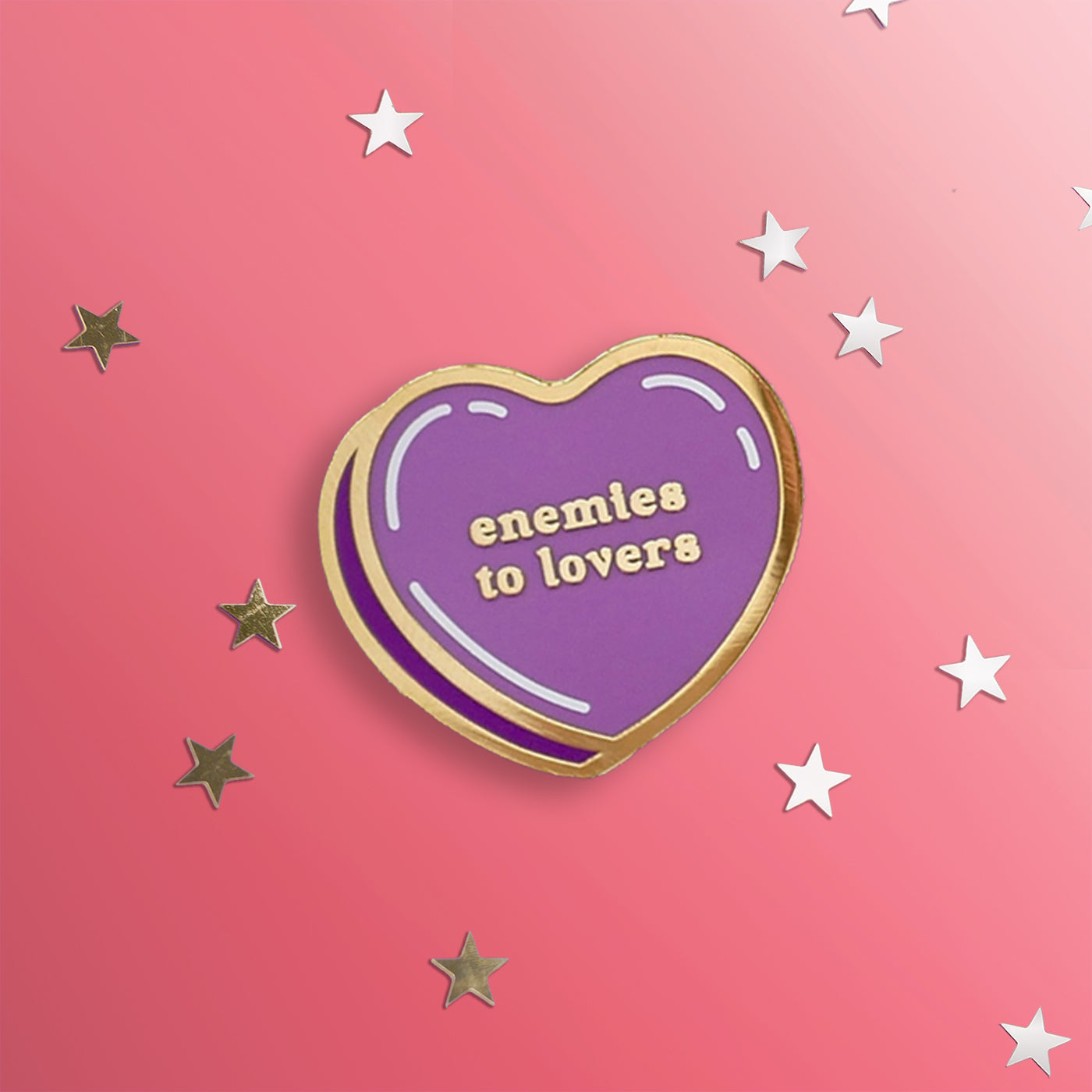 An ode to our beloved love-to-hate relationships, the Enemies to Lovers enamel pin is a cutie patootie, candy sized declaration of our love for undeniable, heated chemistry.