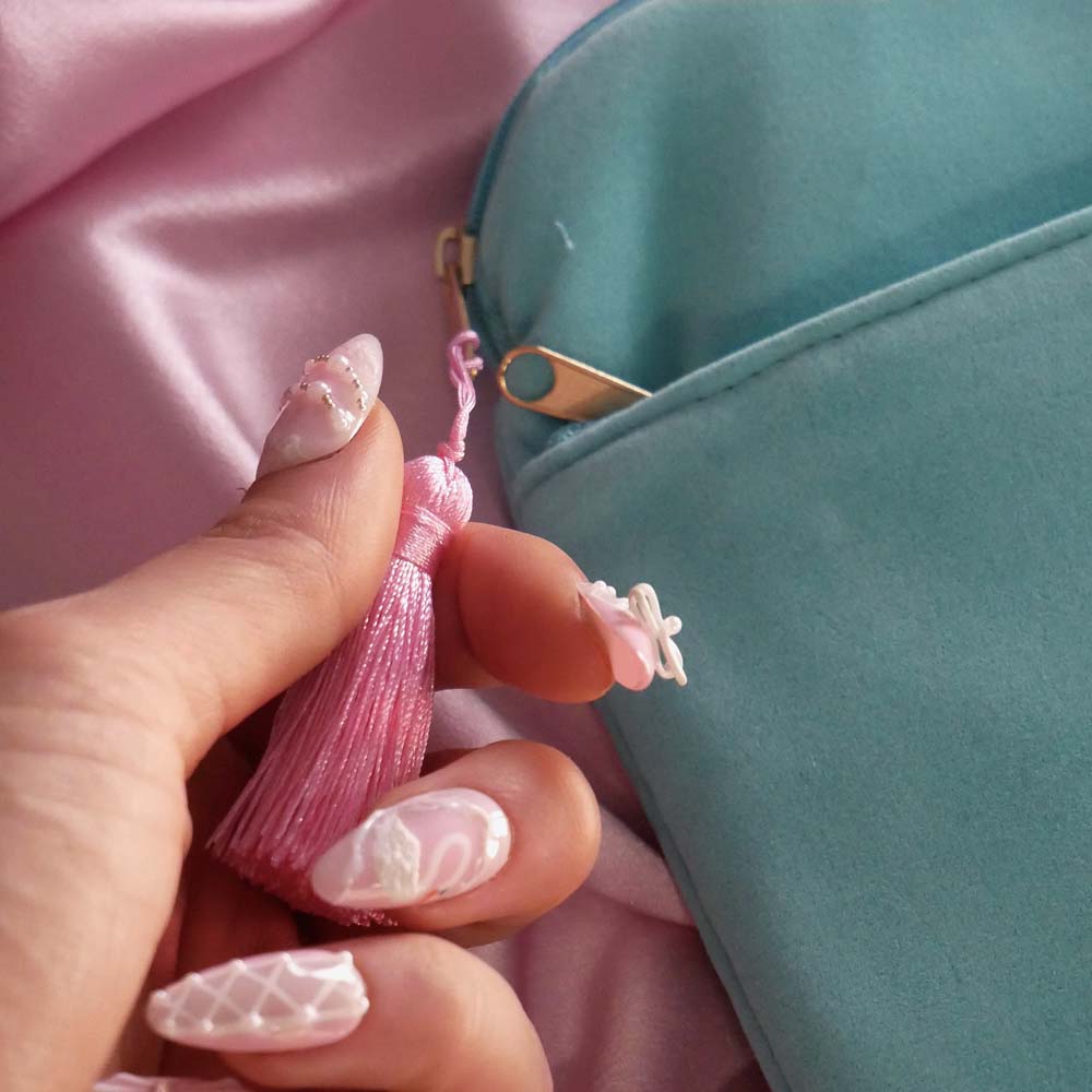 • Zipped top enclosure with tassel