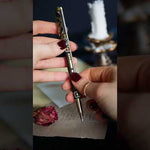 - Hold the gold tip of the pen (the nib end) and twist to open the pen casing.