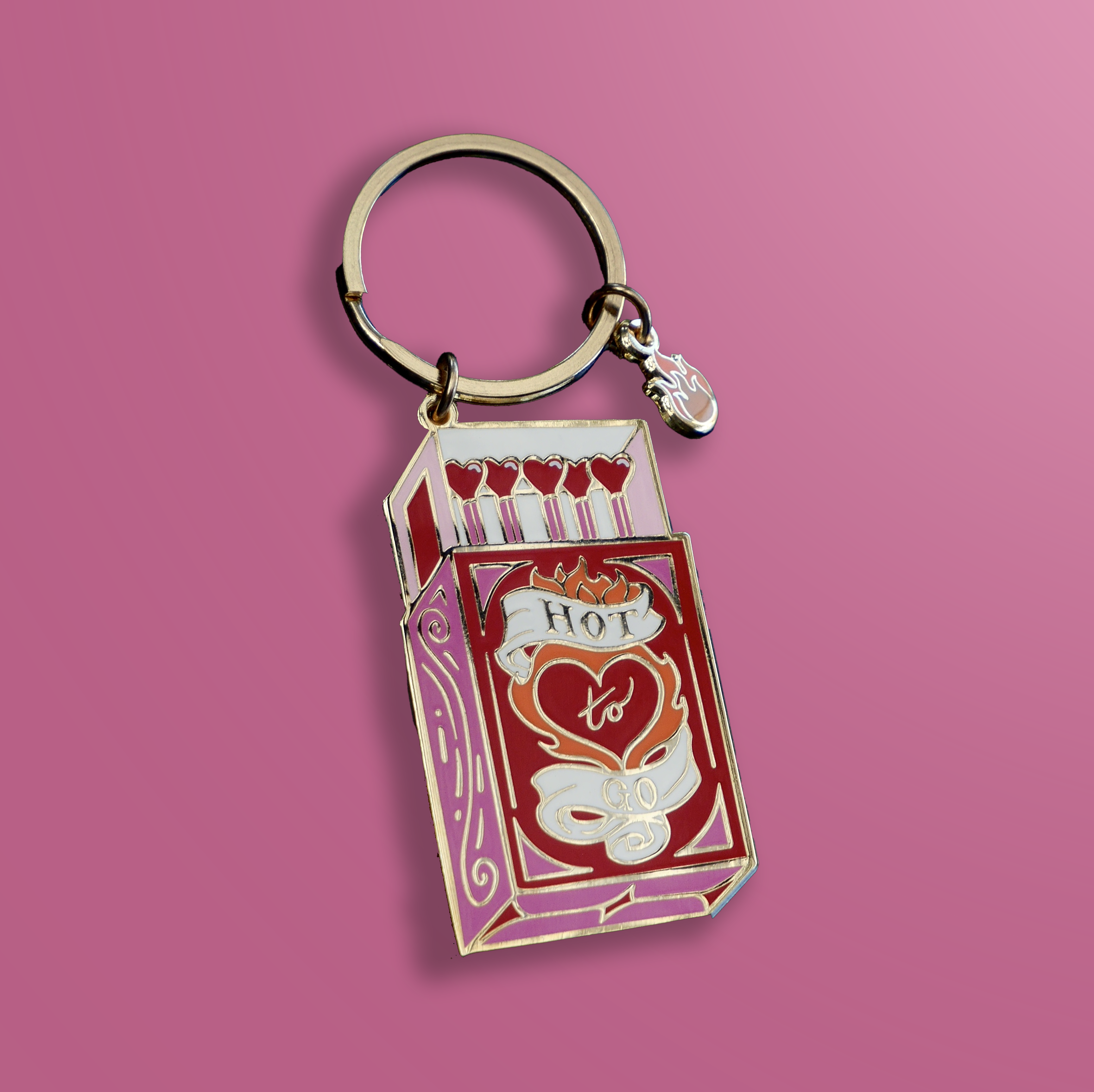This Hot to Go matchbox keyring brings the heat wherever you go. A fun, matchbox inspired charm for bold babes, key collectors, and lovers of all things hot and cute.